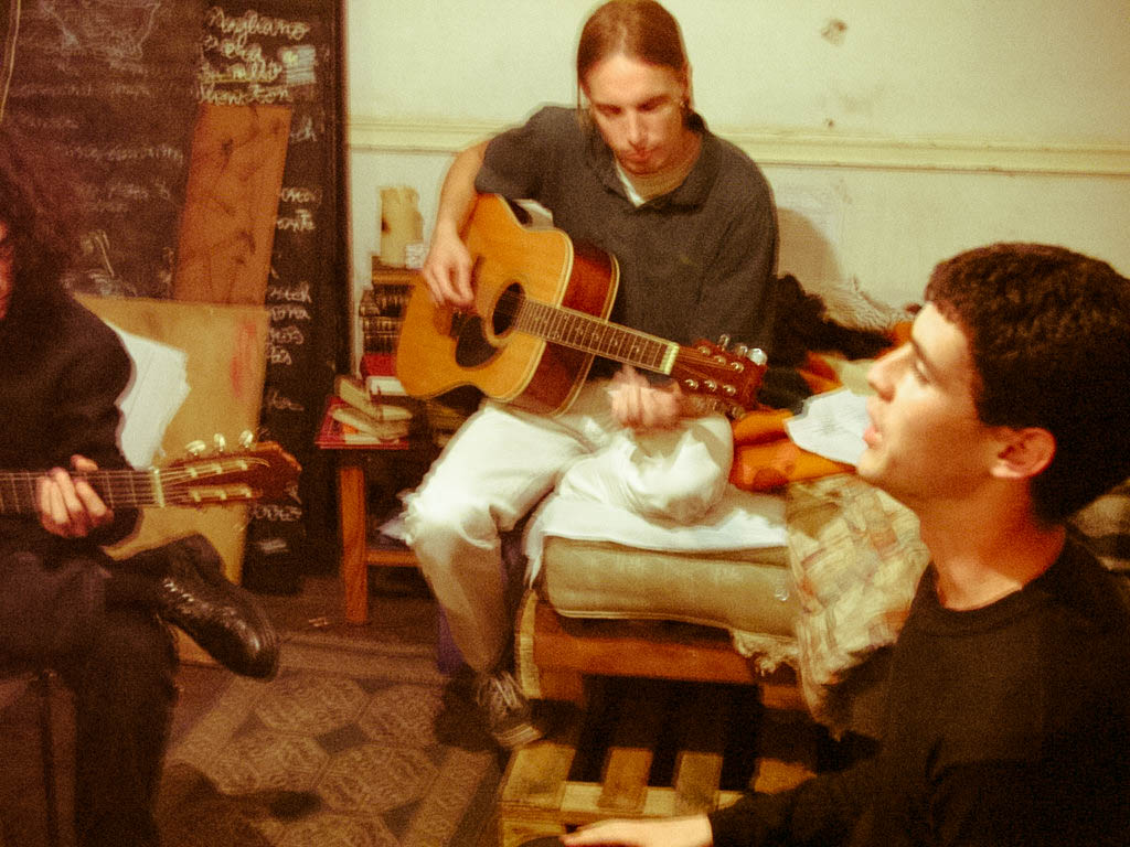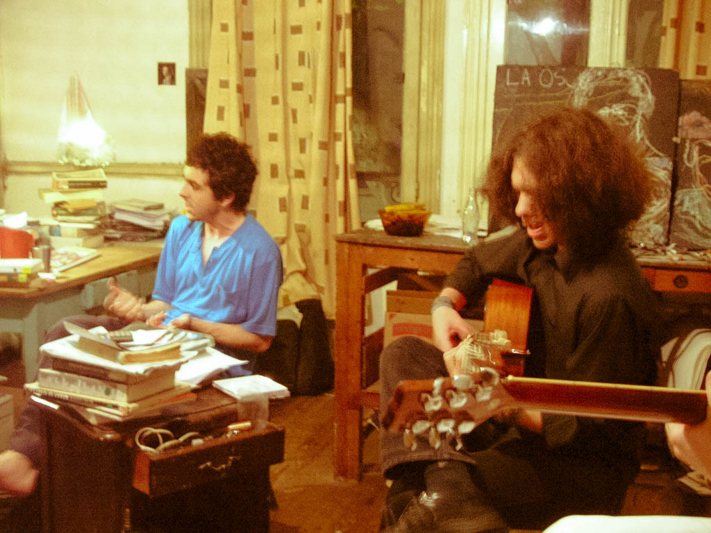 Concierto Jánico #1 was a performance for two voices and two guitars created for the exhibition Jania (2003) and re-enacted twice in 2004 (Caramelos y Pimientos cycle of poetry readings and Estuario international poetry festival). Texts: J. L. Borges, e. e. cummings, Francisco Tomsich, Diego de Ávila. Voices: Francisco Tomsich, Diego de Ávila. Guitars and improvisation: Vladimir Guicheff, Mauro Rodríguez.