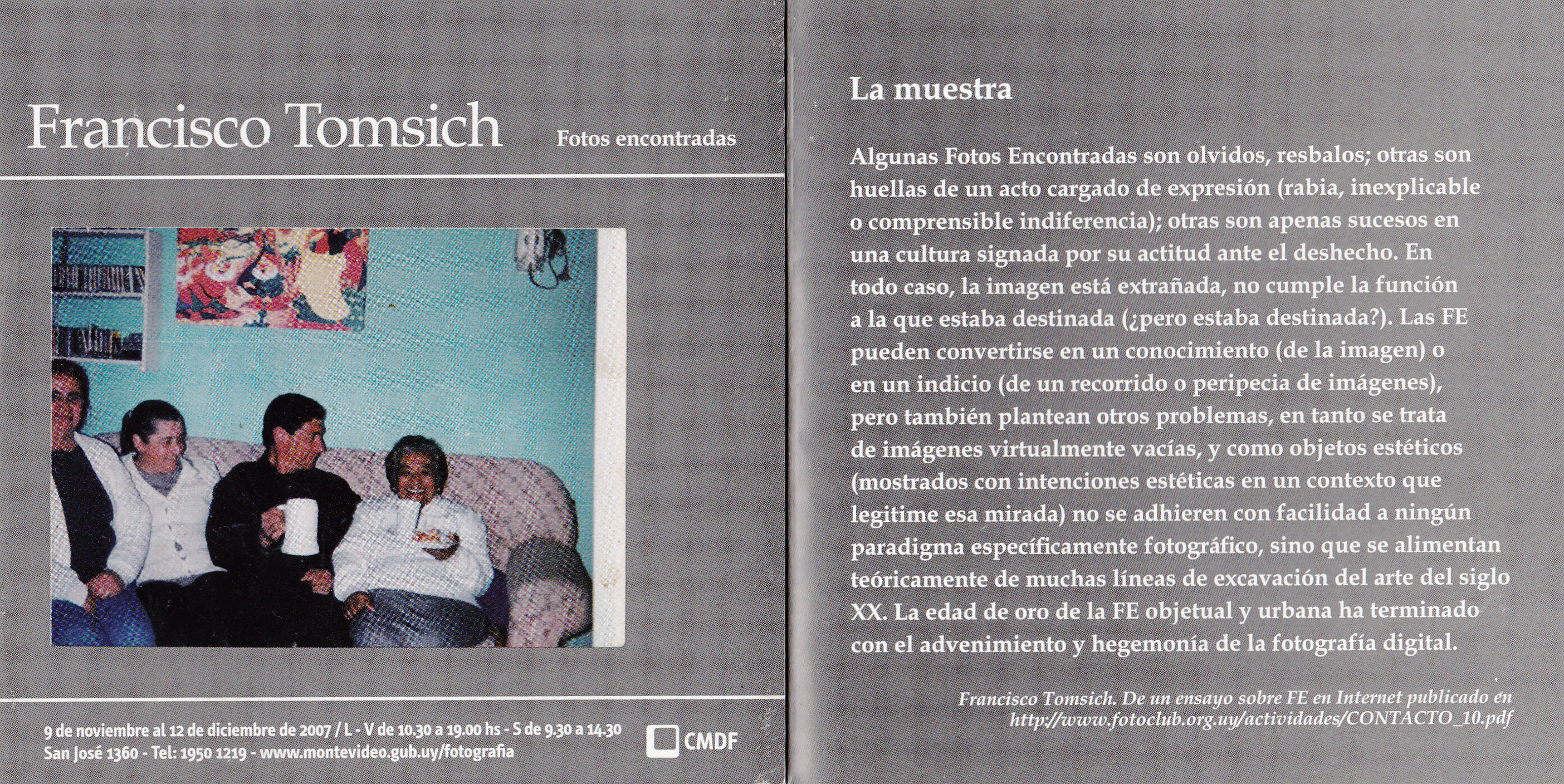 03/11/200711/01/2018 Fotos encontradas, opening Inauguración: 9 de noviembre de 2008, 19:30 hs. Cf. AQUÍ