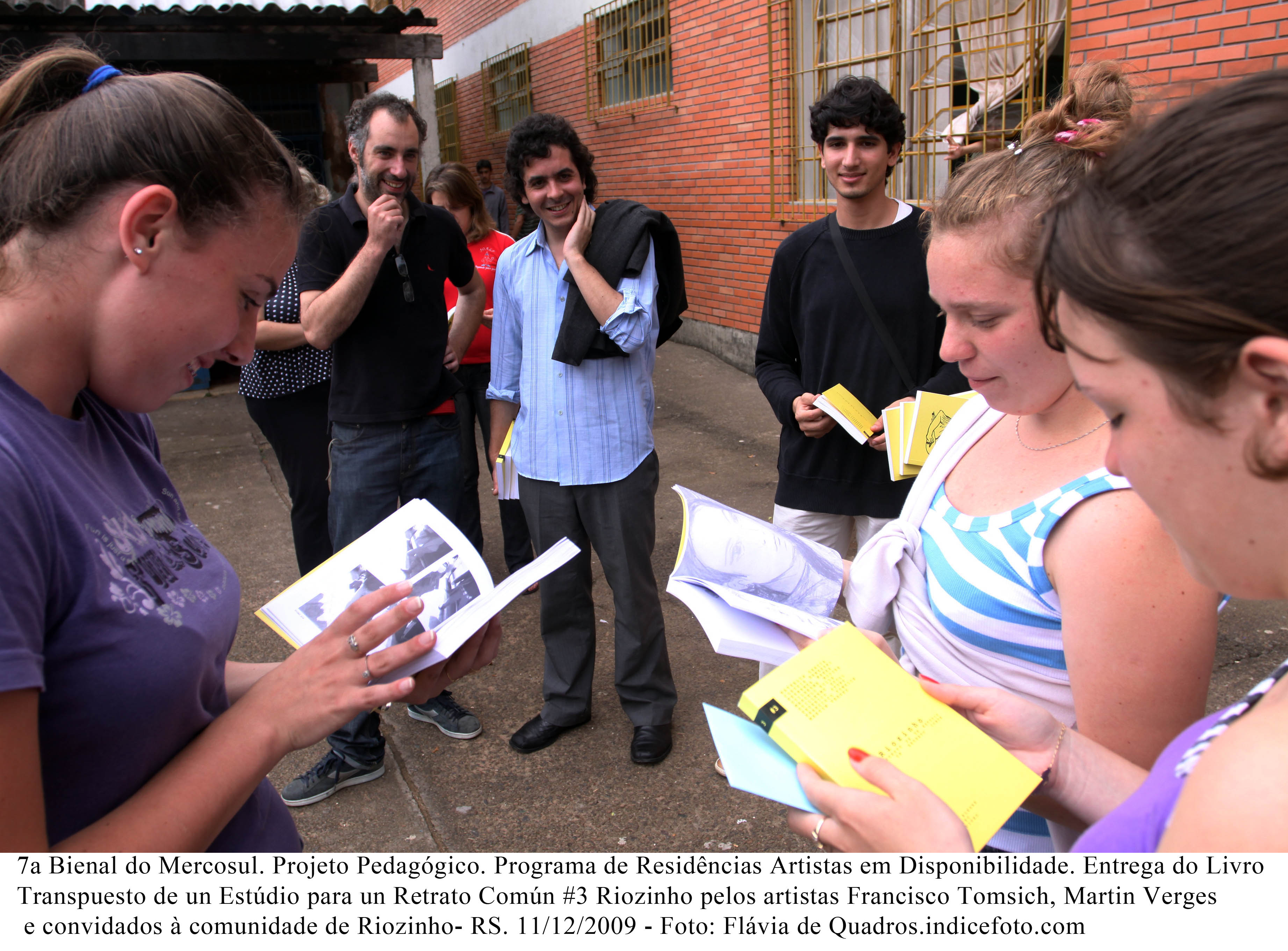 7a Bienal do Mercosul. Projeto Pedagógico. Programa de Residências Artistas em Disponibilidade. Entrega do Livro Transpuesto de un Estúdio para un Retrato Común #3 Riozinho pelos artistas Francisco Tomsich, Martin Verges e convidados à comunidade de Riozinho- RS. 11/12/2009 – Foto: Flávia de Quadros.indicefoto.com