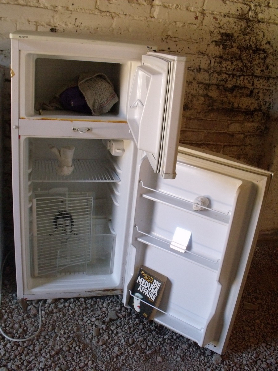 Plaster, acrylics and towel, 30 x 17 x 15 cm, 2010. Exhibited inside a refrigerator in Casa de Medusa and also in The Medusa Affair, Essai sur l’enfermement, 2010-2011
