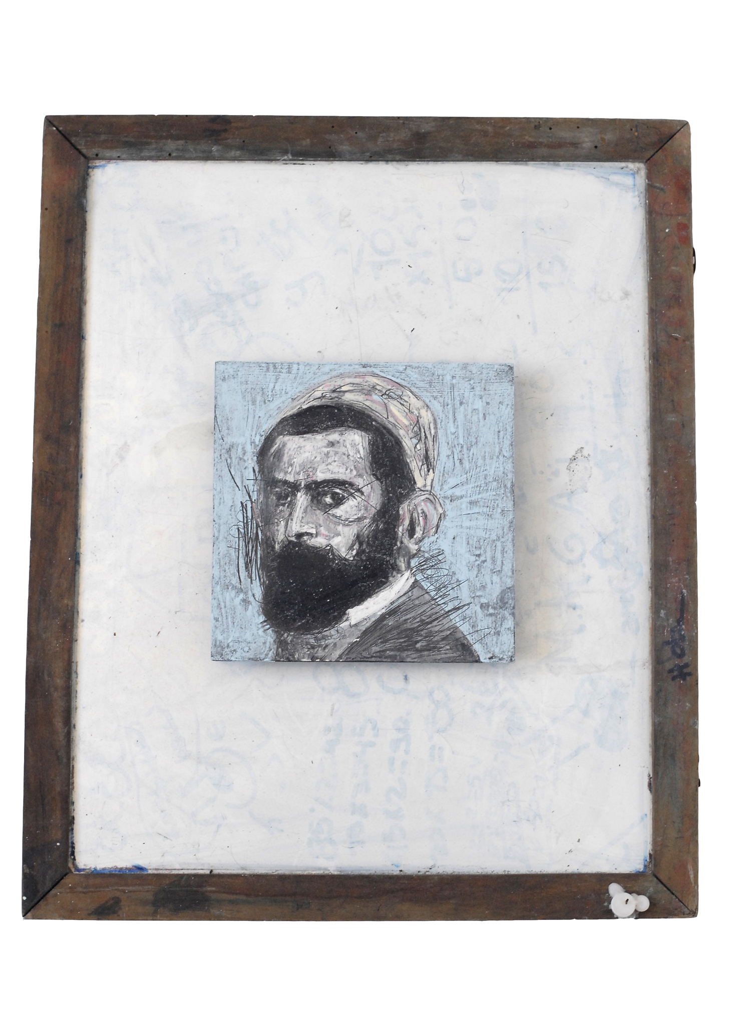 Dos piezas de la serie El pintor y la tabla (N° II y N° V, 2005) junto a Estudio en paisaje Suizo (2004) | Two pieces from the series El pintor y la tabla (Nrs. II and V, 2005) with Study on Swiss Landscape (2004); Estudio (también llamado El Griego), que integró la instalación de 2008 Ensayo sobre la persistencia junto a Estudio (M.J.Z.) #2, de 2006 | A Study (The Greek One) which also was part of the installation from 2008 Ensayo sobre la persistencia and Study (M.J.Z.) #2 (2006); Estudio de Onetti (tiza, pastel, óleo y pintura acrílica sobre pallet, 2006), en el piso | A piece from the series Studies of Onetti (chalk, oil, pastel and acrylics on pallet, 2006) on the floor; y luego, la serie de retratos de artistas uruguayos iniciada en 2006: Estudio (J.M.B.), Estudio (J.M.B) #2, Estudio (C.F.S.) y Estudio (J.T.G.), éste último premiado en el 52° Premio Nacional de Artes Visuales (2007) | and some pieces from series of portraits of uruguayan artists that began in 2006: Study (J.M.B.), Study (J.M.B) #2, Study (C.F.S.) y Study (J.T.G.). This last one was awarded at 52° Premio Nacional de Artes Visuales (National Visual Arts Prize, 2007). Dos piezas realizadas en 2008: Estudio (Sirena), vinculada a la muestra Die Berliner Sphinx y Composición (Dos Figuras) | Two pieecs from 2007, one of them related to the exhibition Die Berliner Sphinx. Y, por fin, tres piezas recientes: Erik (2010) y Estudio de perfil, realizadas en el EAC, y Estudio (J.B.), remake, producida en las dos semanas de trabajo en la sala del Museo para sustituir el original Estudio (J.B.), de 2007, en poder en ese entonces de una galerista que no respondió a mi pedido de préstamo. | Erik and Profile Study were produced in 2010 in the Atelier 77 of EAC and Estudio (J.B.), remake, was made in the white cube of the Museum Blanes where Loess was displayed during the two weeks of open atelier there to substitute the original from 2007 Study (J.B.), then in the hands of a galerist who didn’t answer my phone calls and the e-mails in which I requested her for it.