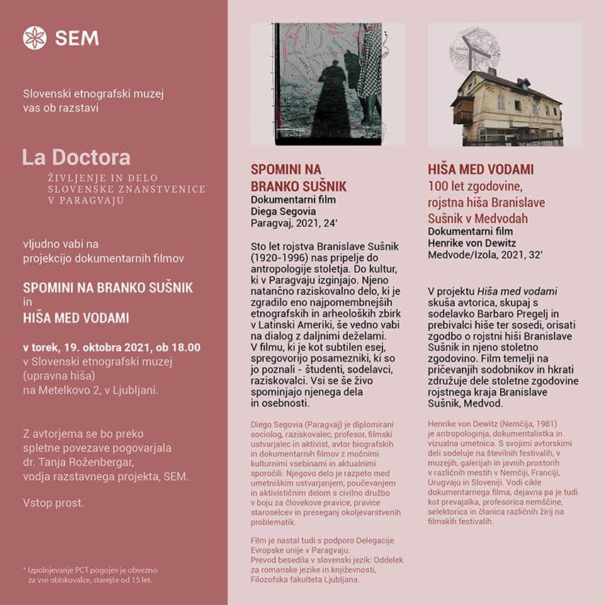 Presentation and discussion of Henrike von Dewitz‘s documentary film House between waters, made in the framework of the Branislava Sušnik’s Dwellings project. Slovene Ethnological Museum, Ljubljana, 19.10.2021, 18:00.