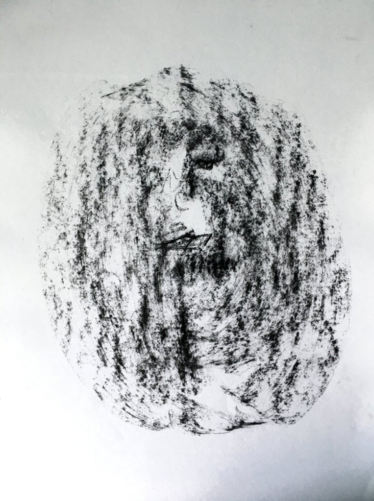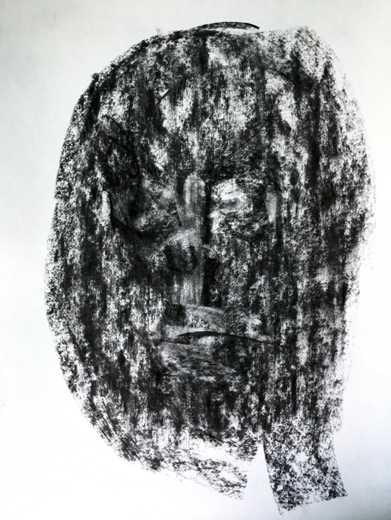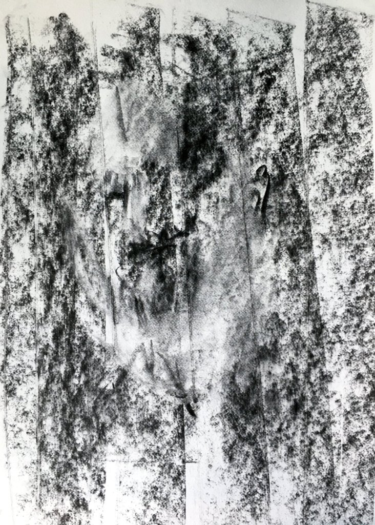 , coal on paper A3, 2020.