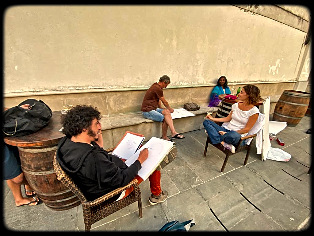 Razstava pouličnih portretov zajema nabor spretnih in hitrih tehnik portretiranja, ki jih izkušena slikarja nizata skozi srečanja na izolskih ulicah. S svojstvenim in prepoznavnim slogom se drug drugemu postavljata ob bok, z istim motivom, a skozi druge oči in z drugače urjeno in izkušeno roko. Umetnika izvirata iz zelo različnih držav in kultur. V aktualnem času se oba znajdeta v Izoli in si od tukaj oblikujeta svojo ustvarjalno pot. Lanskega avgusta se odločita za skupna srečanja pouličnega portretiranja, brez utilitarističnih ozadij, samemu sebi v namen. Gre za fascinacijo nad konceptom srečanj, iz oči v oči z mimoidočimi, prijatelji, neznanci, za ujetje trenutka srečanja, miselnega toka in njegove hkratne minljivosti. V toku srečanj nam predstavljata življenjske momente ljudi, ki sta jih naključno ujela.