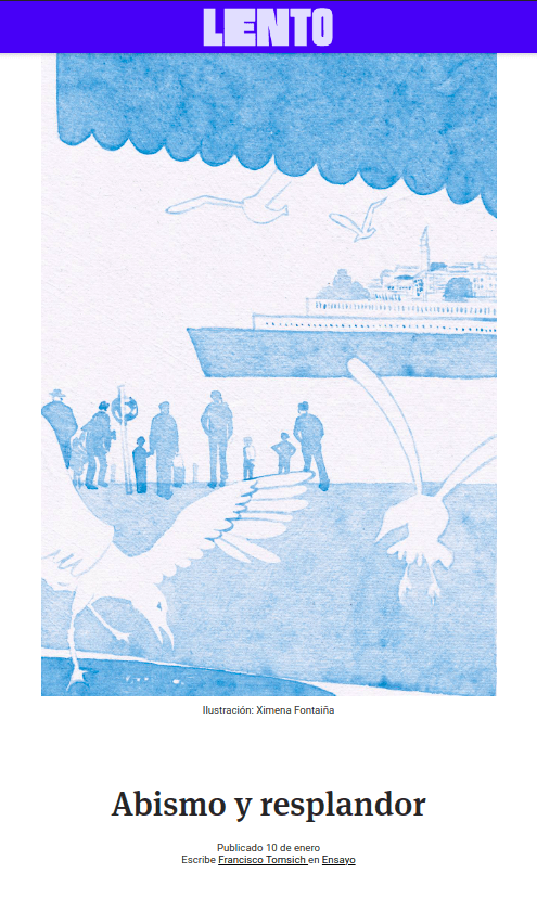 “Abismo y resplandor”, an essay about Izola, the city where I live, was published in January 2026 by the magazine Lento (La diaria, Montevideo, Uruguay). Curated by Ana Fornaro and illustrataed by Ximena Fontaiña.