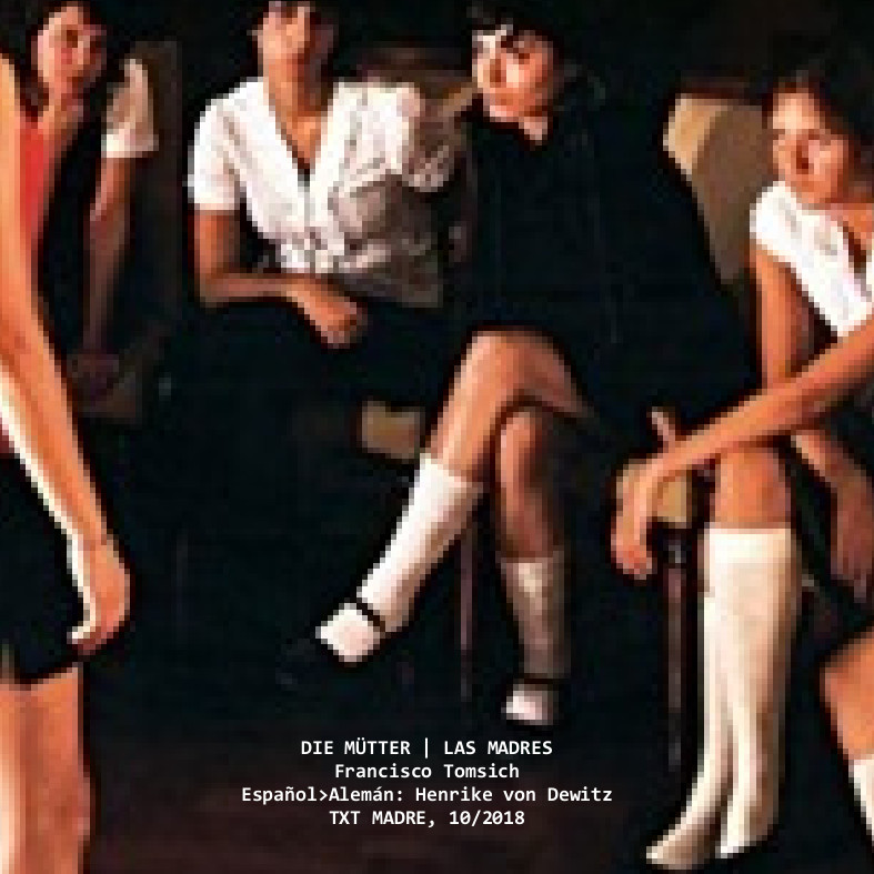 The collaboration between Vladimir Guicheff & Francisco Tomsich around vocal music composition started in 2003 with Concierto jánico, a performance for two voices and two guitars first performed at the opening of Tomsich’s first solo show, Jania. From 2004 onwards, they have collaborated in numerous projects, including the associative writing of the chamber opera El Cantante (The singer, upon texts from the Argentine poet and playwright Gabriel Yeannoteguy, 2004 – 2006), the performance El juramento de Fausto (Faust’s oath, 2010) and Laurel (2012), a duet for soprano and violin. The piece for solo guitar Ícaro [Icarus] was composed by Guicheff in the framework of Tomsich’s exhibition Mudanza/Icaria (2007) and performed for the first time at the opening (Ministry of Education and Culture, Montevideo, August 2007). Las Madres (The Mothers, 2008-2012) was an interdisciplinary performative project commissioned by the Montevideo-based female choir Kárpátia. The working process encompassed different strategies of collective and site-specific creation, and the main outcome was The Mothers, An Introduction and Fifteen Songs for Female Chamber Choir, an one-hour lenght vocal score composed by Guicheff upon a series of songs written by Tomsich for the ocassion. In 2018, they worked together in Landaus, following a similar procedure. A series of texts in verse written in German by Tomsich was the starting point of a composition and a sum of operations for the stage to be collectively produced in Cologne, Germany. Landaus was first performed by the ensemble Kollektiv 3:6 Koeln on 27th November 2018.