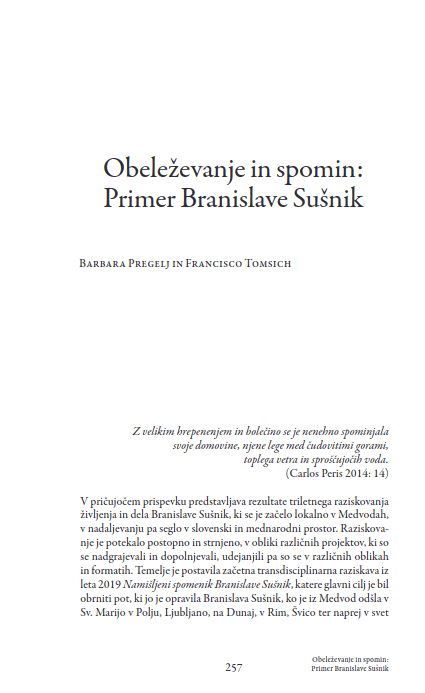 On commemoration and monument: the Branislava Susnik case